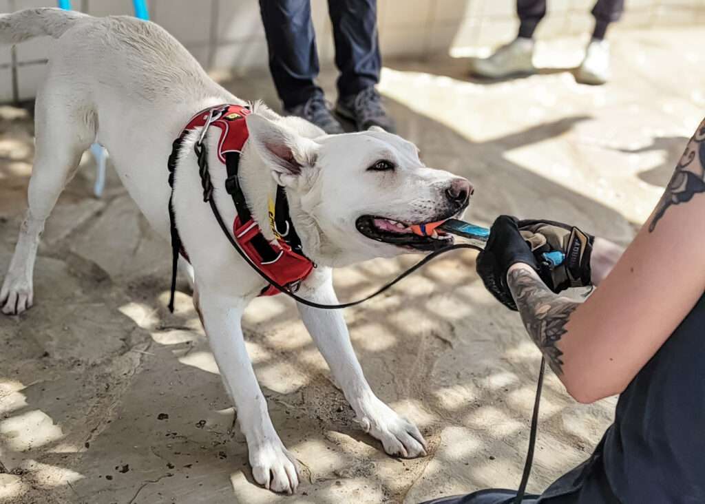Brad was discovered as a stray and taken to the busy East Valley Animal Shelter in Los Angeles. He had been at the shelter for some time, and due to intense overcrowding, could have been in danger. Shelter staff were familiar with SDF’s mission and thought Brad might have potential as a search dog, so they began evaluating him through our screening videos. Based on Brad’s videos, he was invited to our National Training Center for an in-person performance evaluation. Two dedicated shelter volunteers accompanied Brad to our campus, their hearts filled with hope.